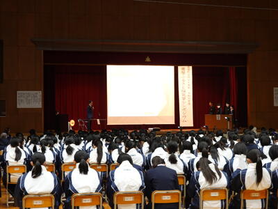 峯岸町長が来校され、3年生の進路実現に向けてエールを送ってくださいました。前向きに思考する様々なヒントを与えてくださいました。ありがとうございました。