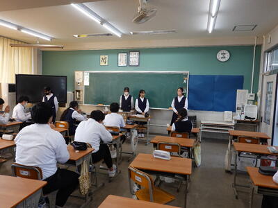 人権学習として「あなたの良いところ」についての学習を行いました。クラス全員に向けて良いところをカード記入し、本人たちに渡しました。受け取った生徒はまわりの子からこのように見られているのかと予想外の反応を示す生徒や、喜ぶ生徒などがいました。また、これを機に自分の生活を見直すきっかけにもなったようです。