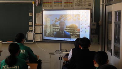 3人の職業インタビューを見た後に全校朝会が実施されました。学校教育目標を交えて、3人のインタビューを受けて今の生活をより良くする為にはどのようにしていけば良いかと地域を元気にする為に必要なことは何かを生徒1人1人がワークシートを使用して考えました。