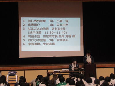 本日は1,2年生の授業参観及びが行われました。1年生は授業、2年生はスキー・スノーボード教室の発表会でした。