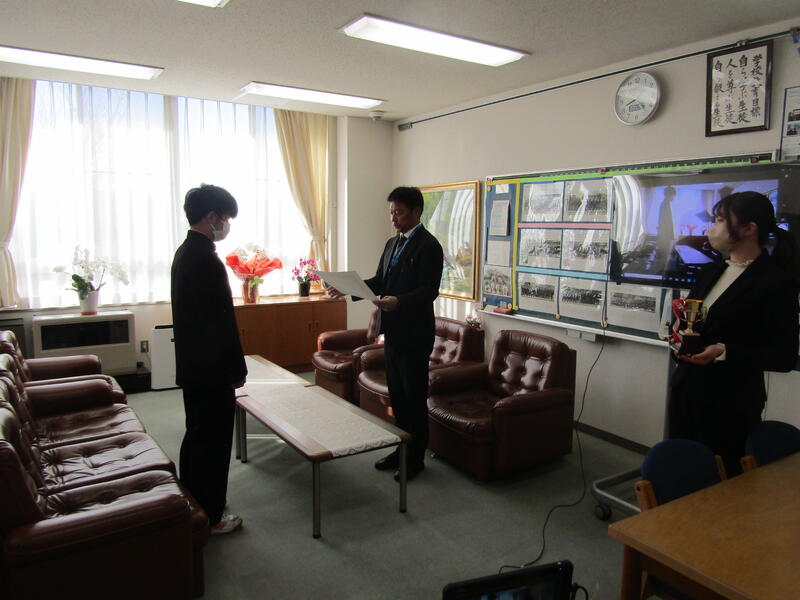 令和6年度の新生徒会役員の任命式が行われました。旧生徒会長から新生徒会長へバトンが渡されました。