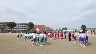 体育祭に向けて、縦割り練習が行われました。3年生が1・2年生をリードしながら、長縄跳びの練習に取り組みました。実際に3年生が縄を回し、1年生が跳ぶ場面も見られ、動きを交えた実践的なアドバイスが送られていました。その成果もあり、多くのクラスで記録を更新することができました。
