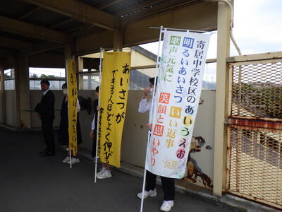 3校合同の朝のあいさつ運動を実施しました。寄居中学校地区の「あいうえお」は明るいあいさつ、いい返事、歌声元気に、笑顔と思いやりです。明るいあいさつが盛んに行われていました。