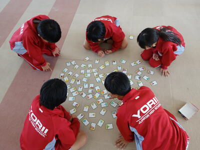 1年生の国語授業では、百人一首を行っていました。真剣に読みを聞き、早く取ろうと頑張る姿が見られました。1位の生徒は21枚取ることができたようです。今回は「仮名づかい」の学習のために、絵札をとるようにしています。