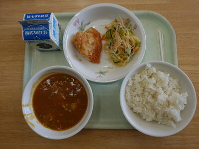 小学校から今まで9年間食べて来た給食が最後の日を迎えました。3年生最後の給食のメニューは、ごはん、ポークカレー、鳥の「巣立ち」とかけている揚げ鶏のすだちソース、春雨サラダ、牛乳でした。3年生は給食が終わった後も校内に残り、卒業することが名残惜しそうにしていました。