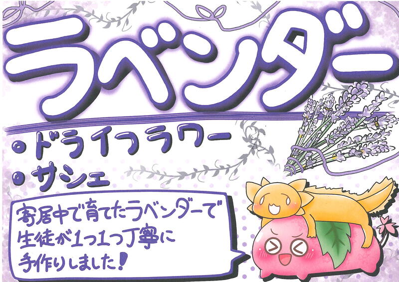 寄居ふるさと探究学のゼミで栽培したラベンダーを使用してドライフラワーとサシェを生徒が作成しました。作成したものは、先週の金曜日から寄居町にある「里の駅アグリン館」にて、それぞれ1つ300円にて販売を開始しました。是非、お立ち寄りください。
